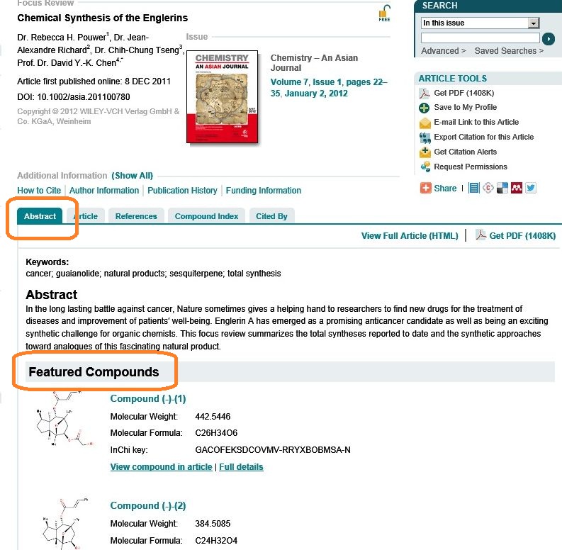 1. Abstract(抄録)に、主要な化合物をFeatured Compoundsとして表示