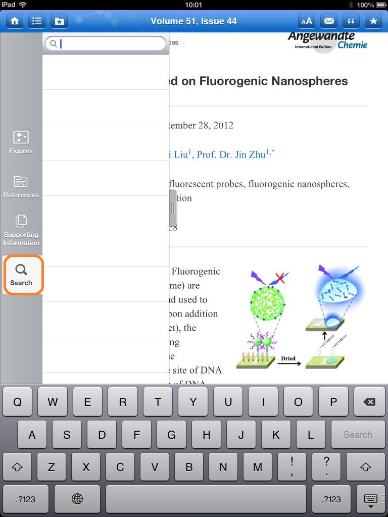 | 4. 本文左の「Search」ボタンにタッチすると、論文内のテキストをキーワード検索できます。 | ![]() |