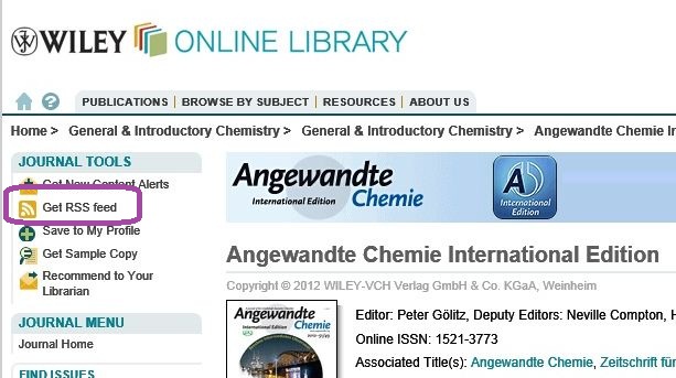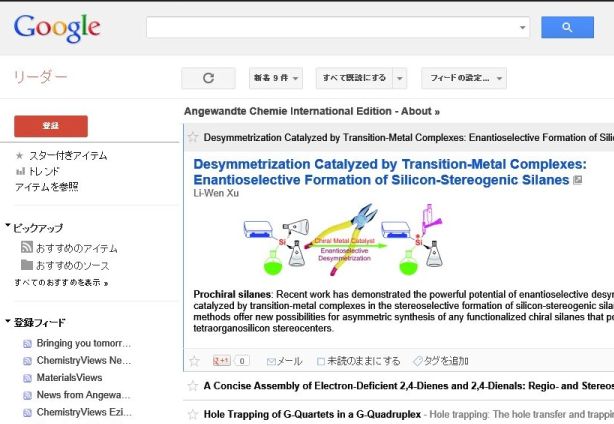 ACIEなど一部のジャーナルはTwitterアカウントを持ち、新着論文の情報を配信しています。(参考記事: Twitter・Facebookで最新情報を受け取れるWileyジャーナル)