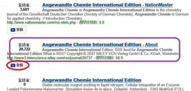 | 2. 「登録」をクリックして、angewandte chemie international editionと入力してから「追加」をクリック | ![]() |