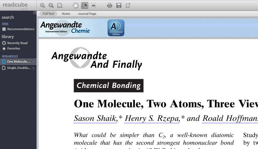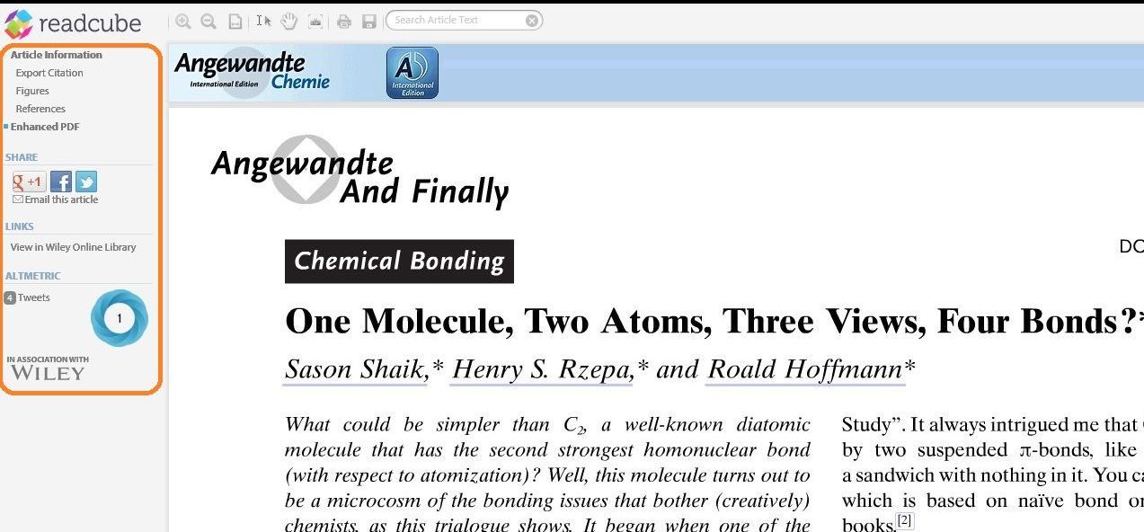 Wileyは、Angewandte Chemie International Edition, Advanced Materialsおよびその姉妹誌を含む理工学分野のジャーナル109誌で、Laptiva社の文献リーダーReadCube Web Readerへの対応を開始しました。今回の109誌を皮切りに対象を順次拡大し、2013年中にはWiley Online Libraryで提供中の1,500誌以上のジャーナルならびにオンライン・レファレンスワーク(オンライン事典)のすべてを対応させる予定です。