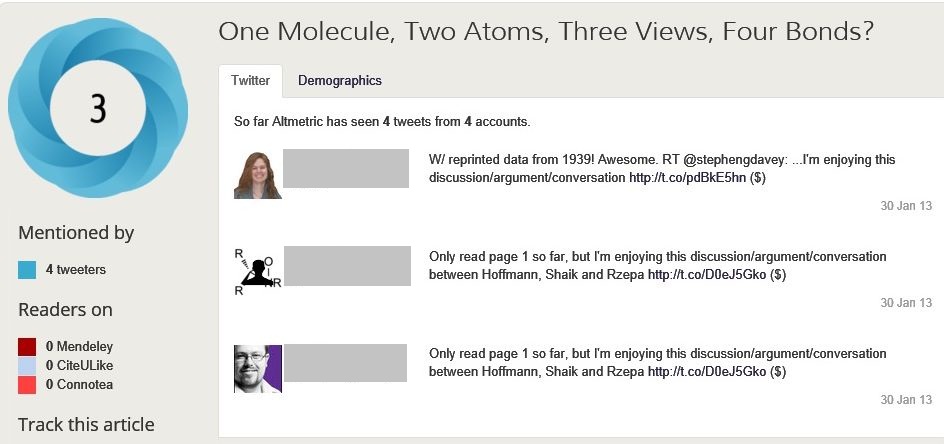 興味深い論文の情報をTwitterやFacebookなどに簡単に投稿できます。また、Altmetricに表示されるアイコンをクリックすると…