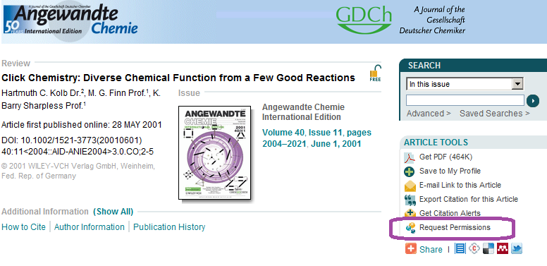 - 画面右のARTICLE TOOLSメニューから、Request Permissions をクリックします。(下図・クリックすると拡大します)
