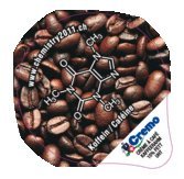 スイスの乳製品メーカー Cremo SA は、世界化学年(IYC2011)を記念して、身近な化合物の構造式をデザインに取り入れたポーション入りコーヒー用ミルクを発売しました。右の写真は「カフェイン」ですが、ほかに乳糖・ショ糖のようにコーヒー関連のもの、またバニラ・ゲラニオール・メントールなど身近な植物由来の物質をデザインしたものもあるそうです。下のリンク先でご覧いただけますが、なかなかカラフルです。