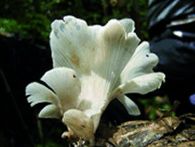 中国科学院昆明植物研究所ほかの研究グループが現地で産生するキノコ(右の写真。Trogia venenata Zhu L. Yangと命名)を調べた結果、γ-グアニジノ酪酸とともに二種の未知のアミノ酸を分離、その後それらの合成にも成功しました。マウスによる実験でこれらのアミノ酸の毒性が確認され、またそのうち一種が突然死の犠牲者の血液からも検出されたことなどから、このキノコが突然死の原因と特定されました。最近は雲南省の住民にこのキノコの毒性を周知する啓蒙活動が奏功し、2010年・11年の両年は突然死の発生が見られなくなったとのことです。