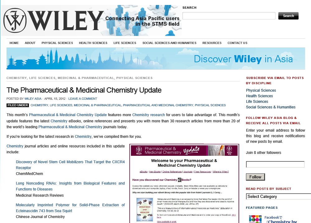 各分野の注目論文・新刊書籍・各種キャンペーンといった研究に役立つ最新情報をお届けするWiley Asiaブログ(英語)が始まりました。