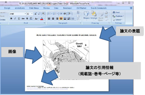 3. PowerPointが起動し、画像が論文の表題や引用情報とともに取り込まれます。